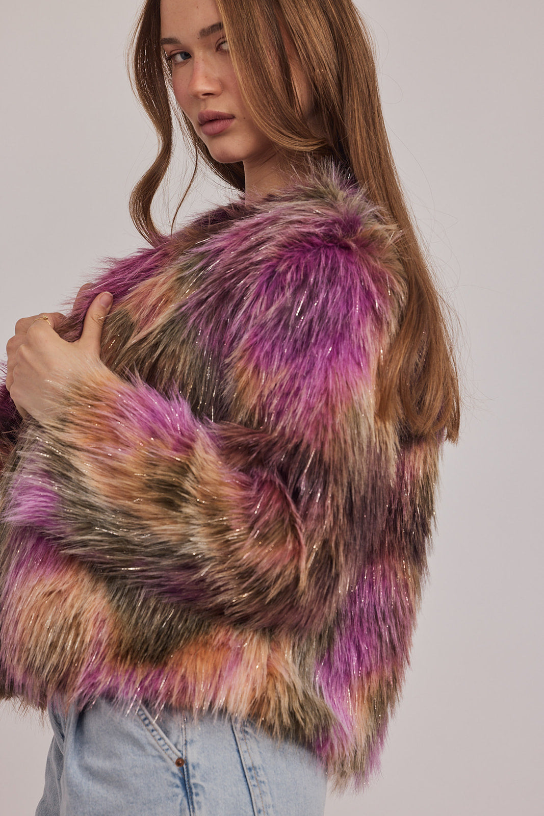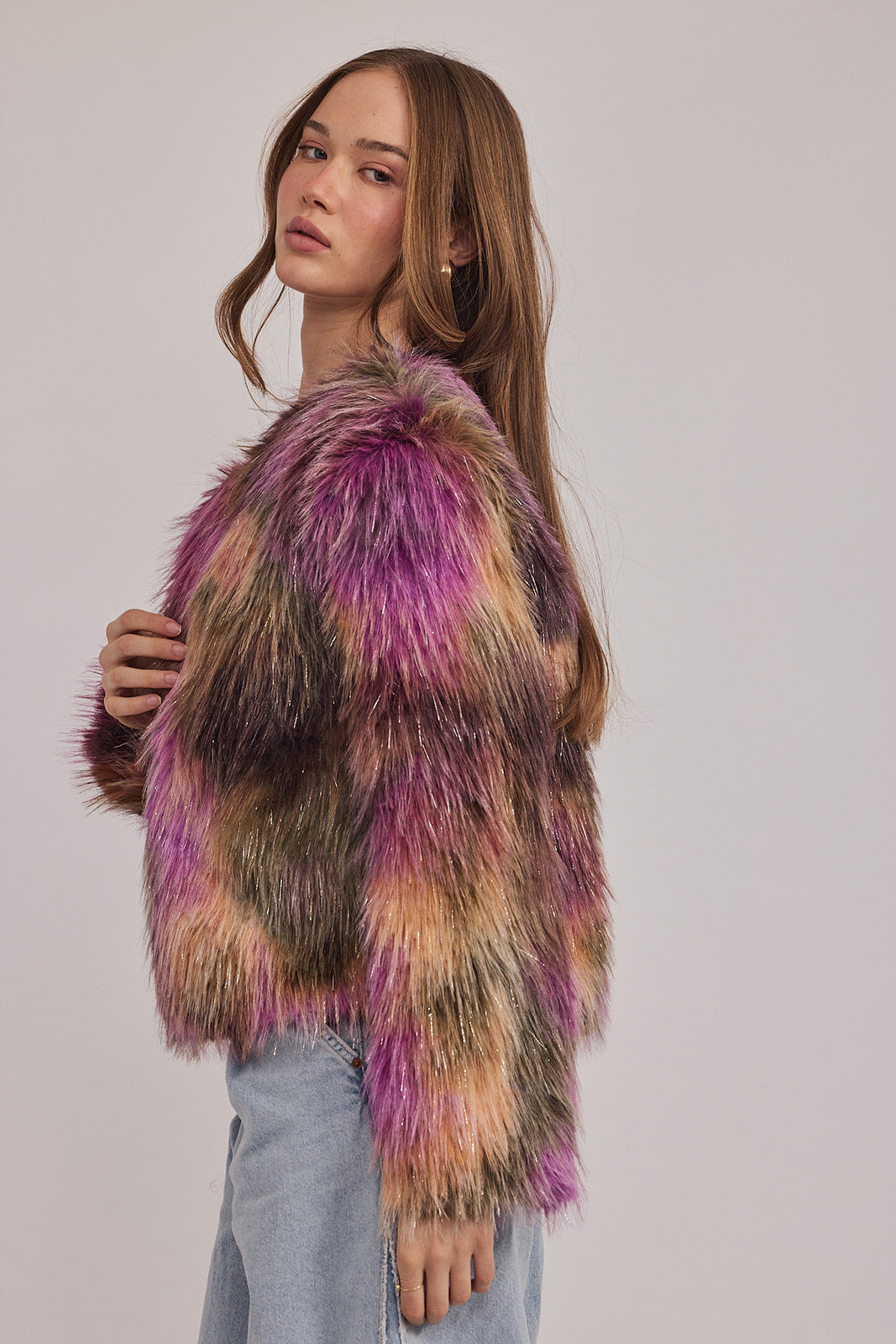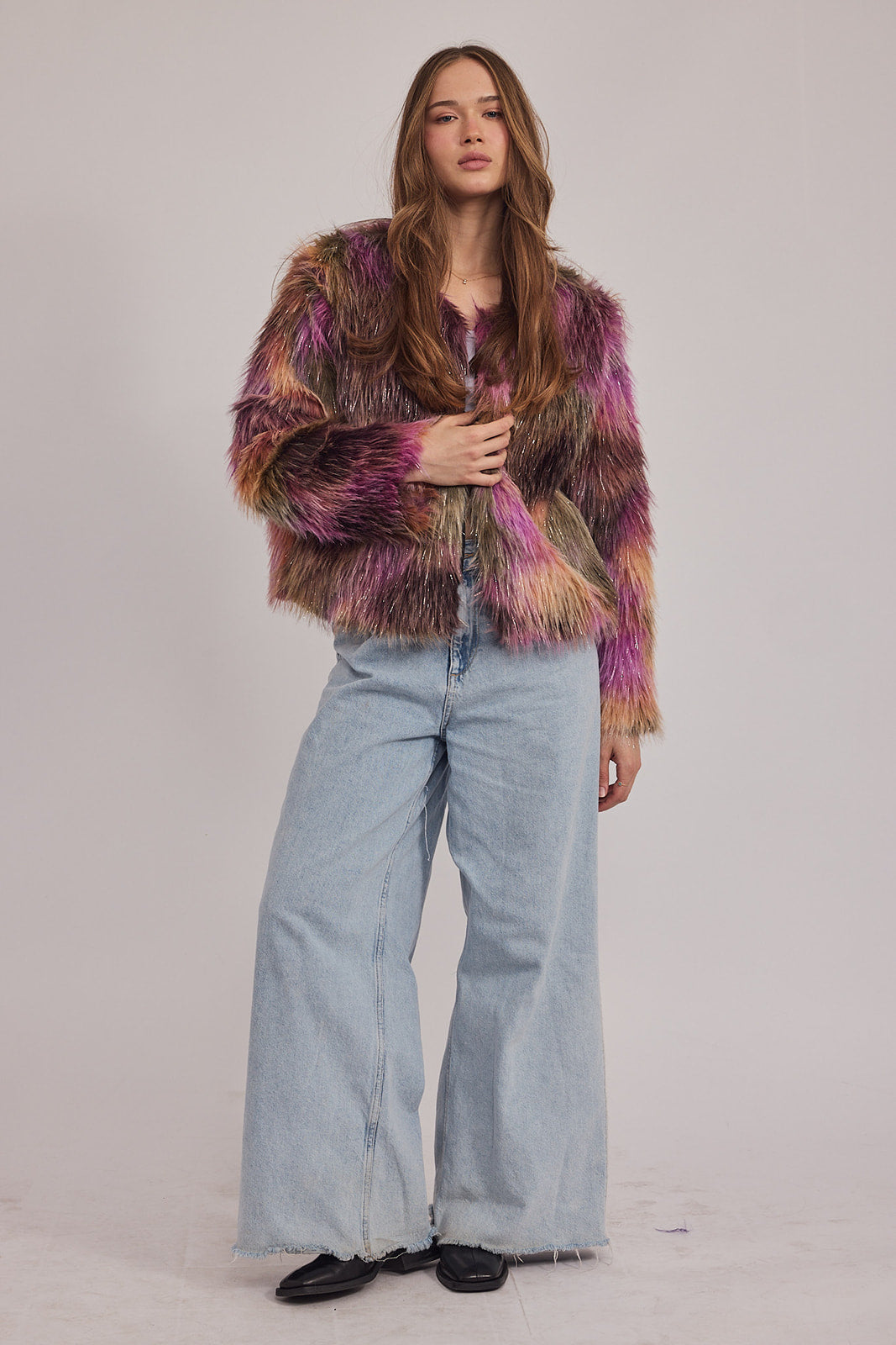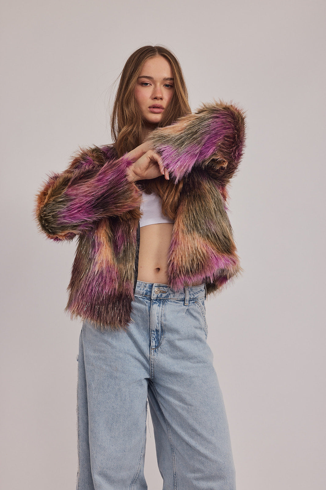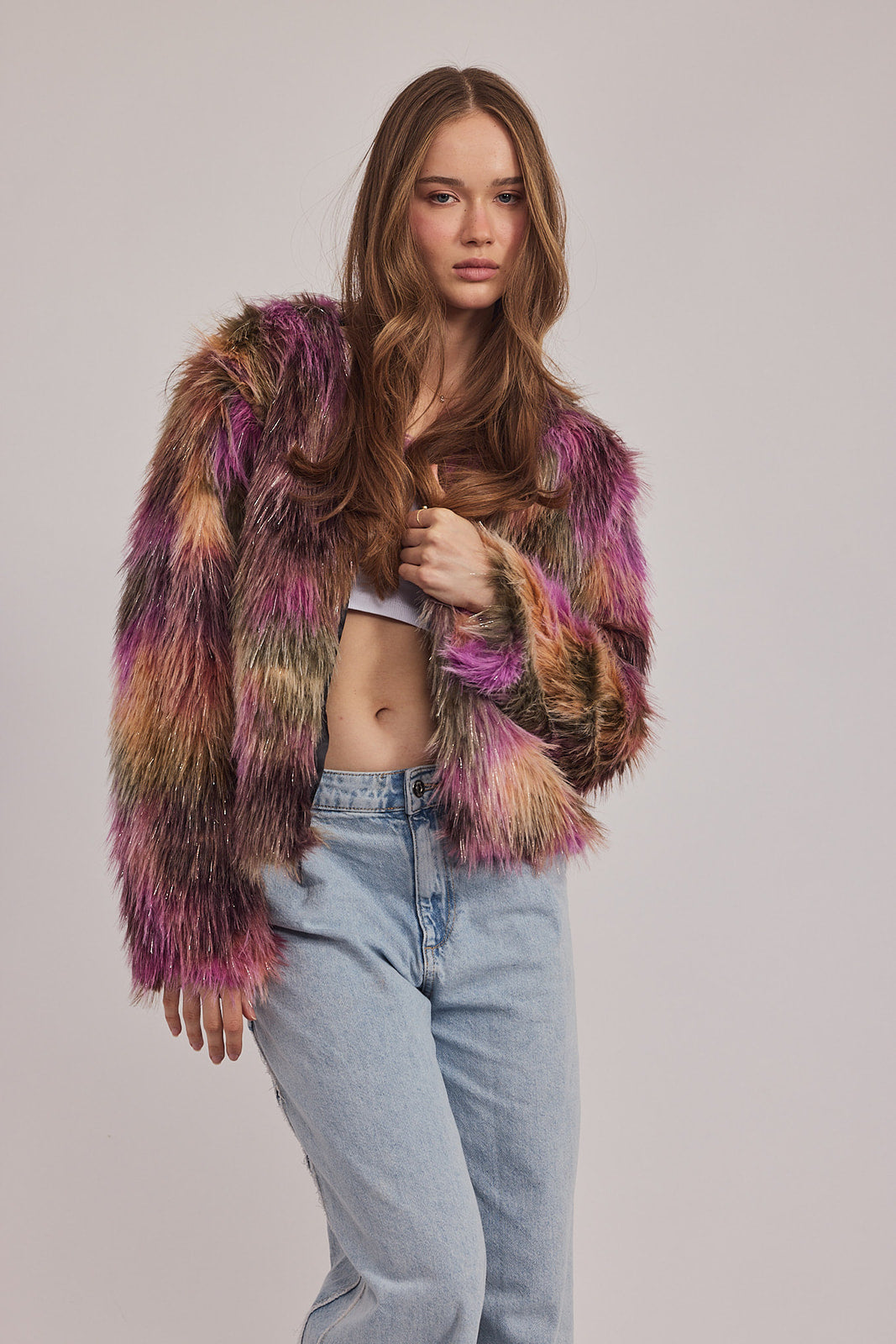 מעיל דמוי פרווה צבעוני בגזרה קלילה.