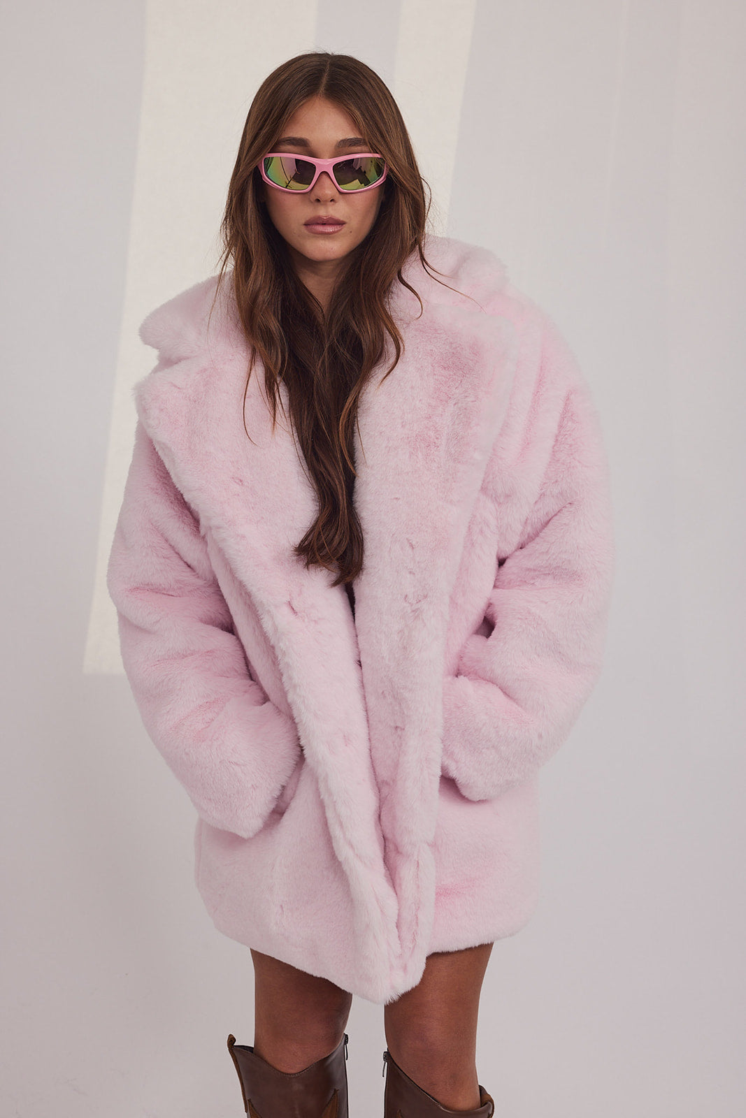 מעיל פרווה מלאכותית בלי כובע בצבע ורוד בייבי