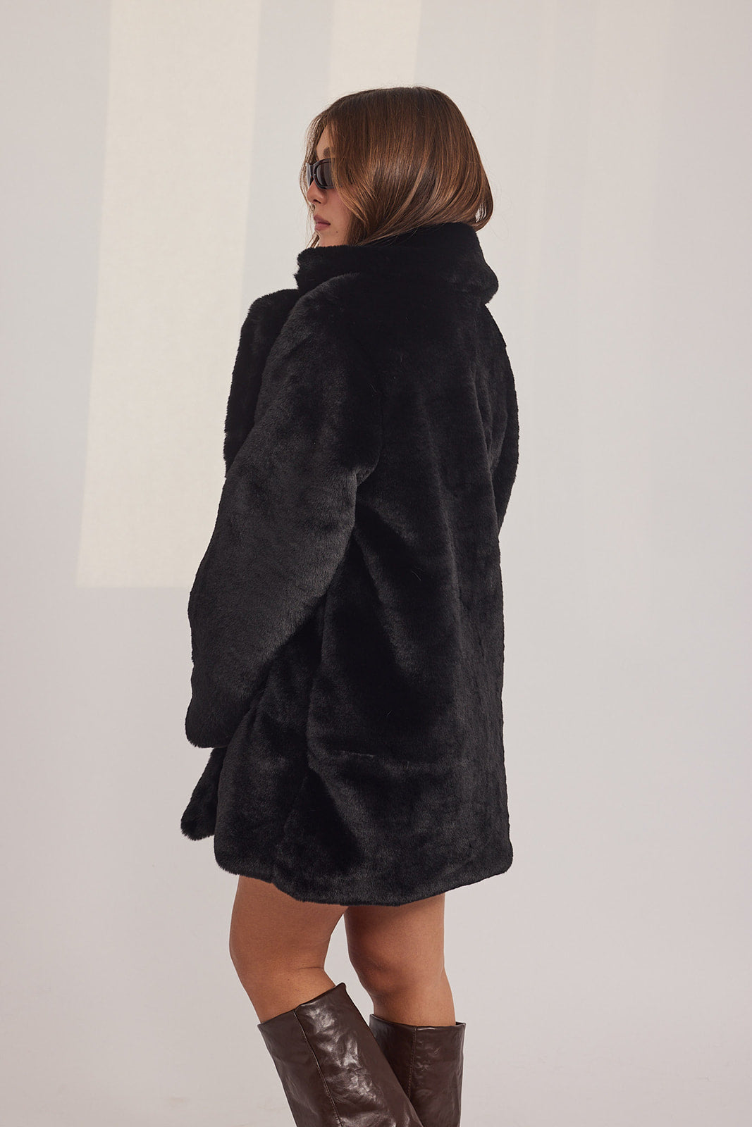 מעיל פרווה מלאכותית בלי כובע בצבע שחור